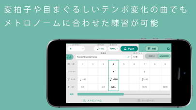 - 練習する楽曲にリンクしたテンポ変化の設定。再度入力する手間が省ける