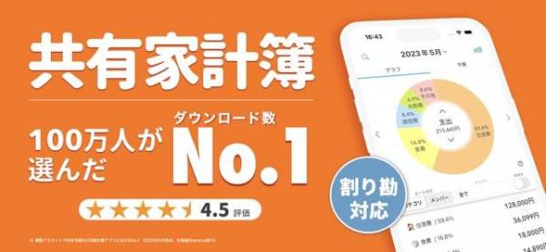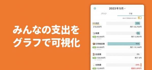 - 夫婦やカップルで1つの家計簿を共有し、収支を共同管理できるアプリ