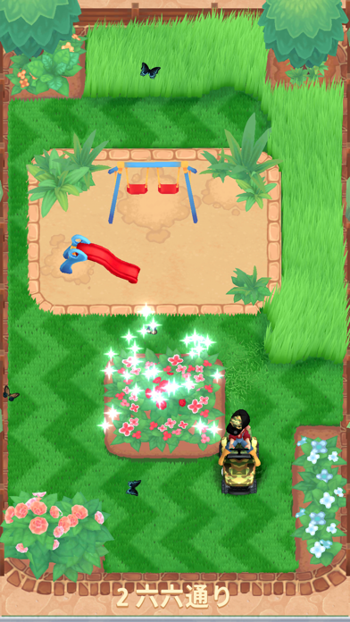 スワイプ操作でカートを移動させ、全ての芝を刈り取るとステージクリア。刈り残した部分は”光るリング”が表示され、しっかりと教えてくれます。