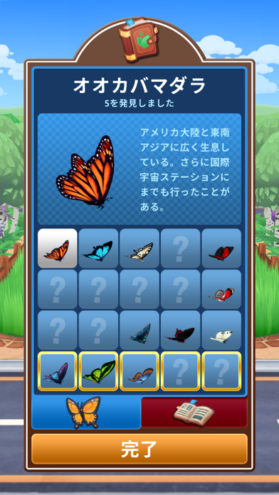 ▲芝を刈っていると光る物体が。これをタップすると昆虫などをGETでき、図鑑に登録されていく。