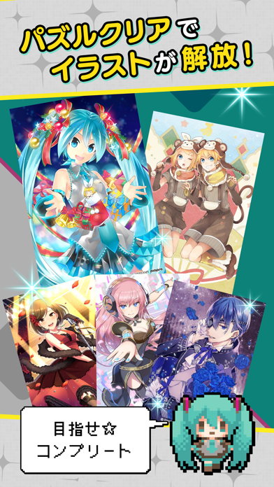 パズルを解いて、初音ミクや巡音ルカたちボーカロイドのイラストをゲット