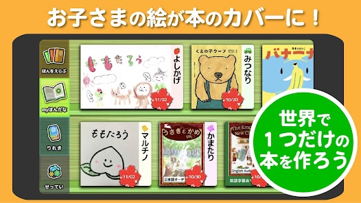 思い出の写真や絵を絵本のカバーにすることも可能です。お子様の好きな写真やキャラクターを表紙にしたり、自分で書いた絵を写真に撮って表紙にしたり。読書のモチベーションを高められるだけでなく、自分だけのオリジナル絵本を作る楽しさも体験できます。