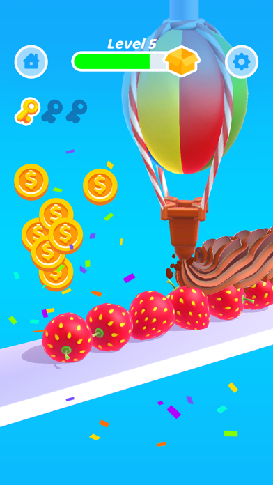 どんどん流れてくるお菓子やフルーツに、クリームを乗っけていくカジュアルゲーム。延々とクリームを絞り出すだけというシンプルな内容ですが、不思議とハマってしまいます。まずプレイする時はイヤホン必須。「プシューッ」と絞り出す時の音が最高に気持ちいいんです。