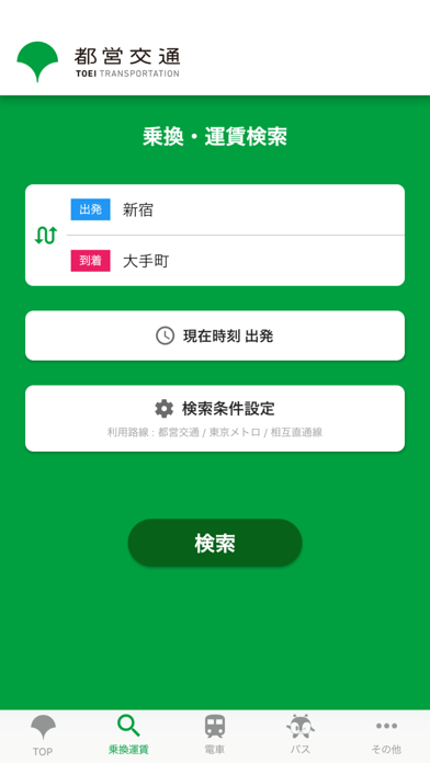 - 都営交通だけでなく、東京メトロ各線や相直各線への乗換検索も可能