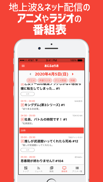 - 直近のアニメや関連番組、声優ラジオを1日ごとの番組表から確認できる