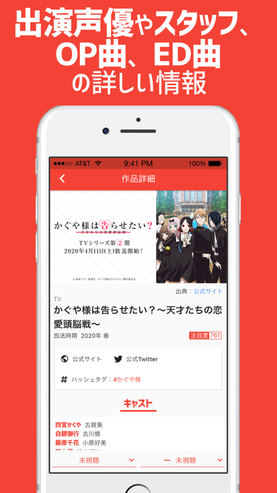 またアニメの番組表や、今期・来期の作品リストなど視聴者としてうれしい機能も。視聴の状況もマークしておけば、アニメを並行して観ていても忘れずにすみます。ぜひ活用して、アニメライフをエンジョイしちゃいましょう。