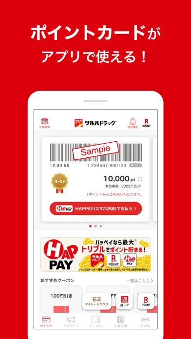 - スマホにポイントカードを登録できる、ツルハドラッグ公式アプリ