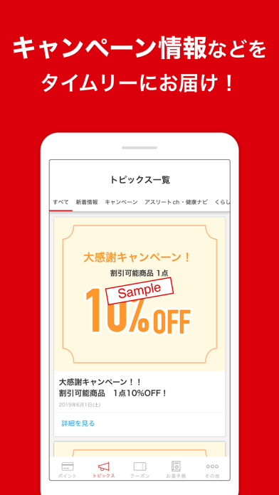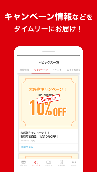 - クーポンやキャンペーンの情報も続々お届け。買い物をよりお得に