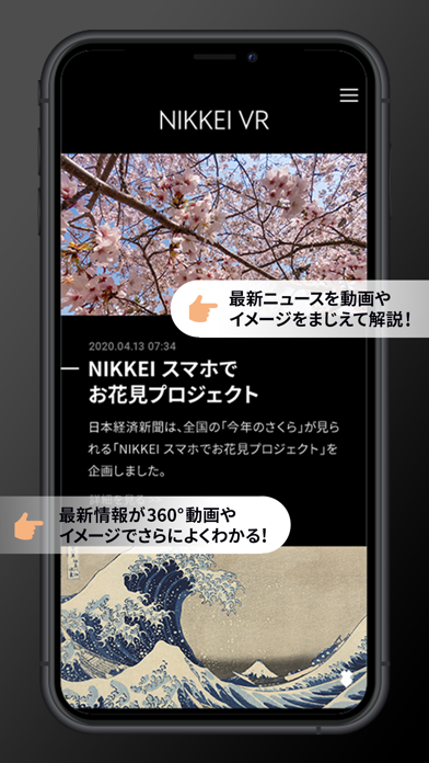 従来のニュースアプリでは伝わらない「現場の空気感」を味わいたいと思いませんか。日経VRなら360°映像でニュースの舞台に立てるVRニュースアプリです。満開の桜並木を見渡したり、美術館の展示を間近で鑑賞したり、文字だけでは読み取れない情報を映像の中で発見。スマホ一台で全国どこへでも瞬間移動し、まるで現場にいるような没入感を体験できます。
