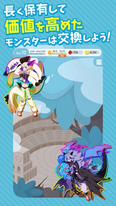 育成したモンスターたちで、クエストに挑むことができます。バトルは自動で進むので、難しいことは考えなくてOK。長いと感じたらスキップすることもできます。クエストで得た報酬で、さらに強いパーティに育て上げましょう。