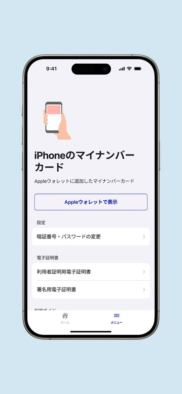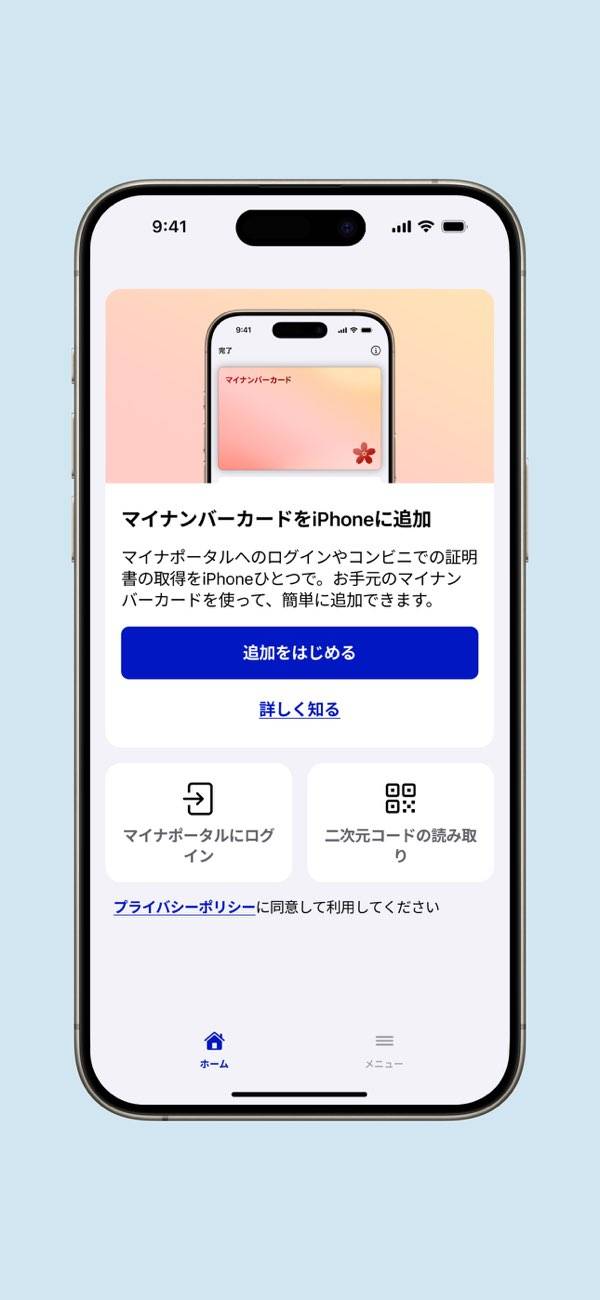 マイナンバーカードを使って、「マイナポータル」へログインできるアプリです。本アプリを使うことで、さまざまな行政手続きの申請をスマホから簡単に行えるようになります。