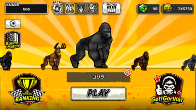 ▲ゲームを進めるとコインがもらえる。「Get! Gorilla!」からガチャ形式で、新しいゴリラと出会えるぞ。