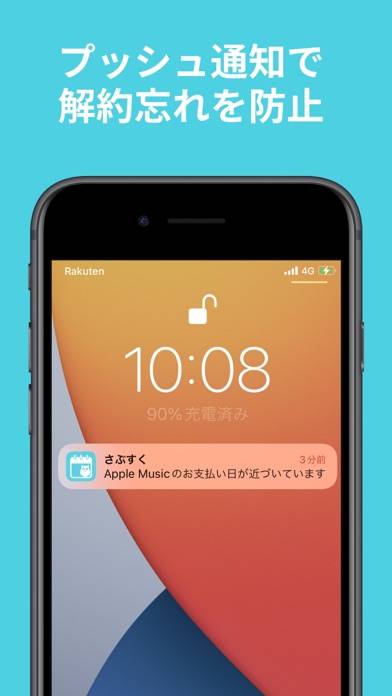 - 次の支払日前にはプッシュ通知でお知らせ。払い忘れや解約忘れを防止