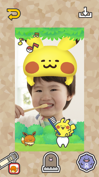 歯みがきをしているときの姿を写真に残し、デコレーションして楽しめます。ポケモンたちと一緒に戦った記念として残すと、達成感も味わえるでしょう。デコレーションのシールは、毎日の歯みがきで少しずつ増やせます。