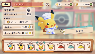 ゲームを進めていくと、カフェで働くポケモンが増えていきます。ポケモンそれぞれにパズルで使えるスキルを持っています。そのスキルを使いこなしていくのが慣れるまで少し難しいな、と感じました。