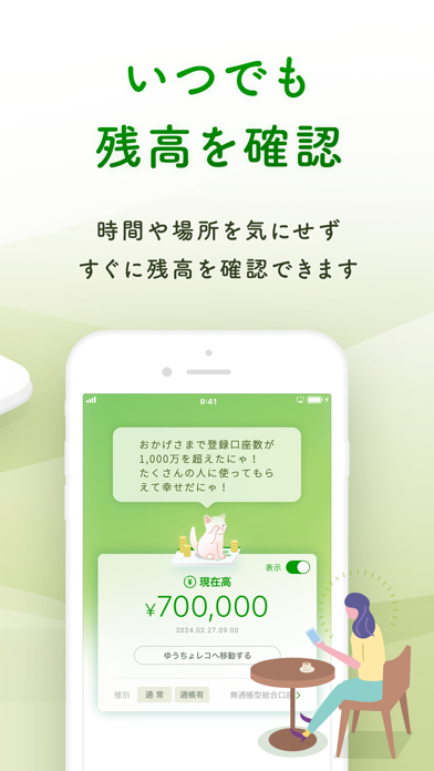 - ゆうちょ銀行の口座残高や利用明細を、いつでもチェックできるアプリ