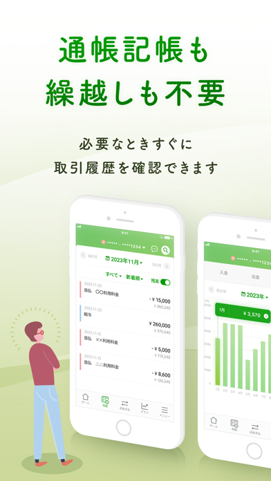 - 入出金と残高をそれぞれグラフで表示。利用状況がひと目でわかる
