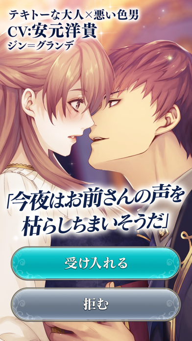 野獣な王子と親密になれる恋愛シミュレーションが楽しめます。選択肢によって好感度が「真実の愛」か「情熱の愛」、または両方と、3パターンの結果になります。ストーリーは1日1話を(5シーン分)を無料で読むことが可能です。