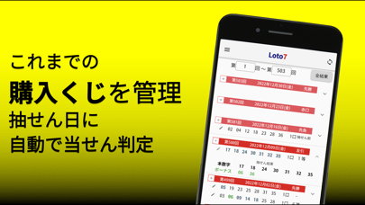 くじの種類ごとに最新の抽せん結果をすぐにチェック可能。自分の購入履歴を登録しておけば、どの数字が当たったか即座に分かります。