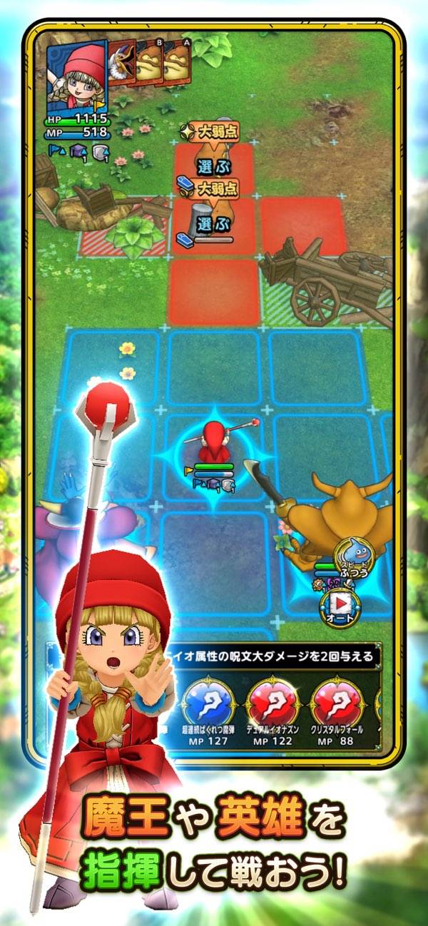 - 相性や配置を意識するバトル。お馴染みの「とくぎ」を駆使して戦おう