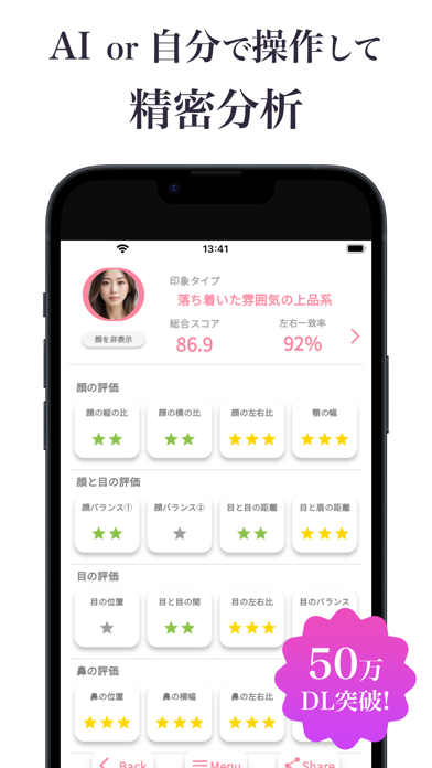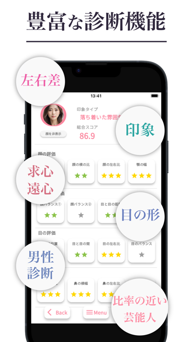 - 顔バランスから親近感、元気さを診断。他人から見た印象がわかる