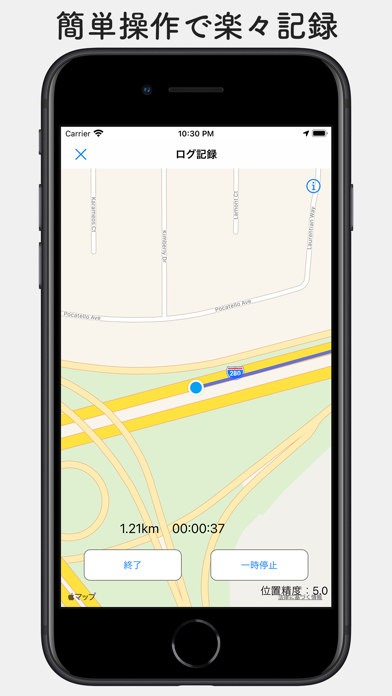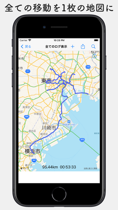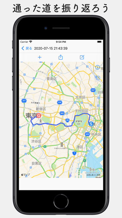 GPSを使って、移動した道のりを簡単に記録できるアプリです。過去のルートを地図上に重ねて表示することもできます。
