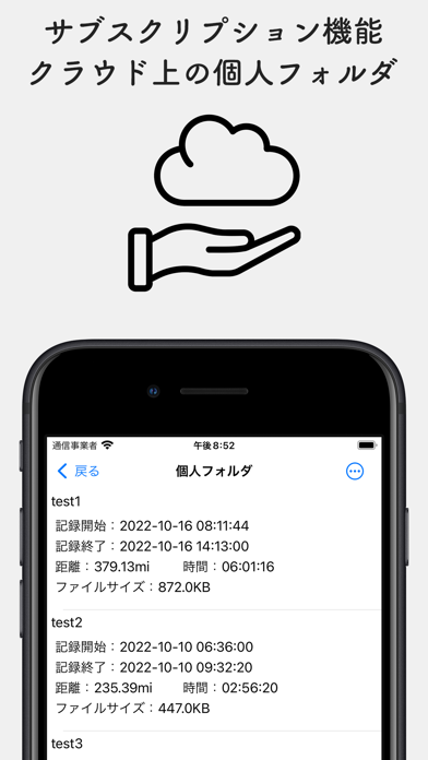 本アプリはデータをGPXファイル形式で出力することができます。これにより、バックアップや他アプリとのデータ移行が簡単。またiCloudを通じてデータを安全に保存できるため、スマホを変えたり紛失したりした場合でも安心です。