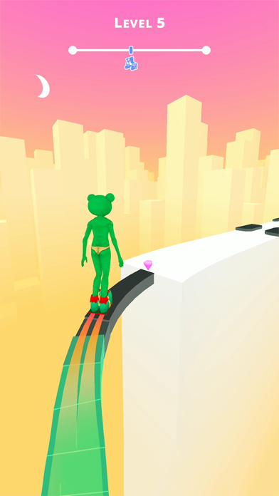 障害物を避けたり、ジャンプしたりしてコースを滑走するランゲームです。画面を左右にスワイプして足の幅を調整するだけなので、とっても簡単。コースは高くそびえ立っておりファンタジーな雰囲気が漂います。