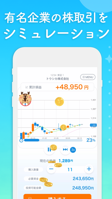 過去の取引をもとに、売買をシミュレーション可能 投資の基本がわかるアプリ