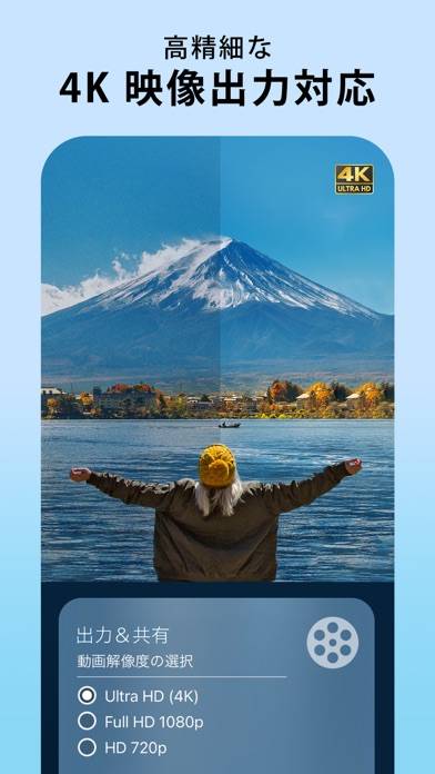 編集が終わったら、画面右上のボタンをタップ。ファイル名や解像度を決めたら「出力」をタップしましょう。編集した動画の書き出しが始まります。