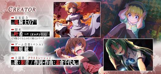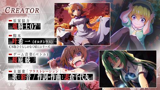 「ひぐらしのなく頃に」を題材としたセミオートバトルRPGです。原作と同じく雛見沢を舞台にした、竜騎士07先生描き下ろしのオリジナルストーリーが楽しめます。キャラストーリーやTIPSなどもあり、ファンの方はもちろん、作品を知らない人でも物語が分かりやすく楽しめる内容になっています。