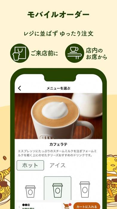 事前に注文とお支払いができるので、待ち時間を減らせます。特に新作発売時など、売り切れになりやすい商品を注文するときに便利。店内の席からも使用可能で、レジに並ばずに商品を受け取れます。