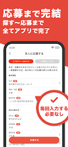 このアプリには、自ら仕事を検索できる機能も備わっています。フリーワードでの検索も可能ですし、都道府県や業種・職種・雇用形態・求人の特徴など、条件を絞り込んでの検索も可能。複数の求人サイトへ、本アプリから応募できるのでとても便利ですよ。