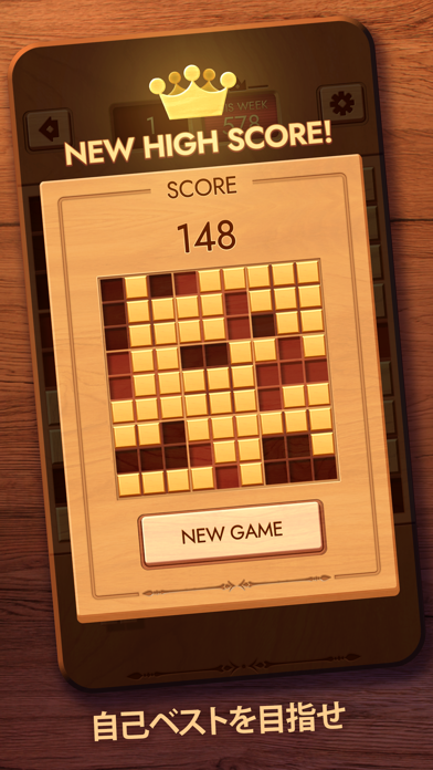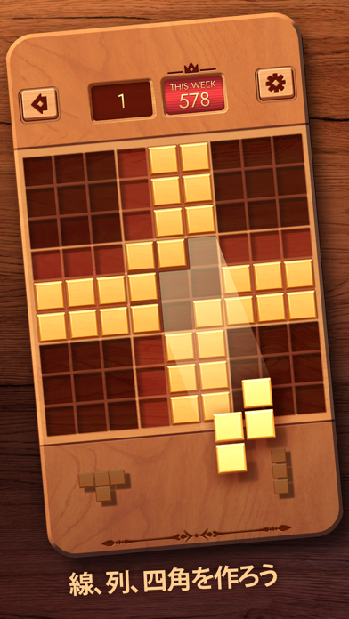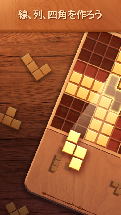 - マスの中にブロックを隙間なく埋めて消していく、木製ブロックパズル