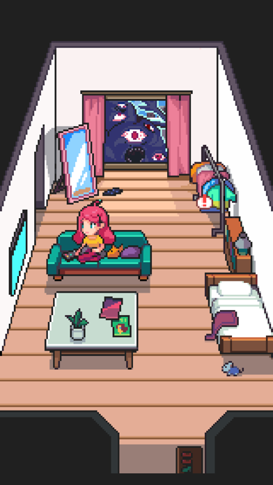 ▲最近視線を感じるという住人。カーテンを開けるとそこには悪霊が! 悪霊をタップして退治しよう。