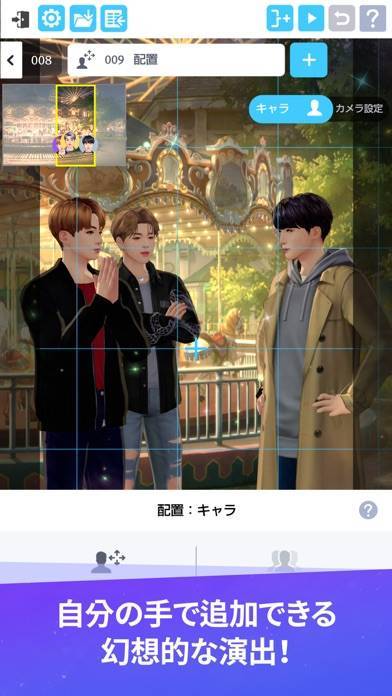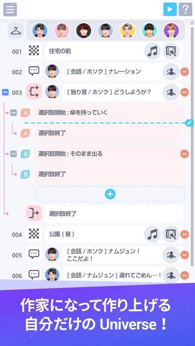 BTSメンバーが登場する物語の台本から、役者の配置まで全てを思うがままに制作できます。1話だけの短編から20話以上の長編まで自由にストーリーを紡いでみましょう。
