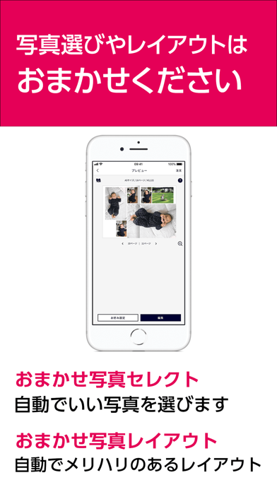 - 高品質なフォトブックをAIが自動生成してくれるアプリ