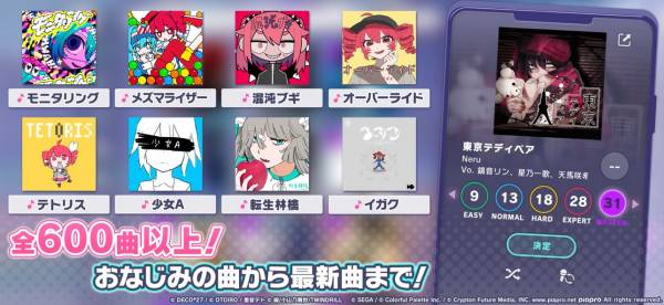 運営にゲーセン音ゲー最強のSEGAと初音ミク開発元のクリプトンがいる時点でリスペクトに溢れたクオリティーの高い音ゲー。基本的にボカロメインだが、コンセプトとしては「ネット発の音楽を若者に聞いてもらう」なので、収録曲の幅は広い。イベント毎に有名ボカロpに書き下ろし曲を依頼しており、コンテンツ展開の広さはプロセカの強みの一つ。