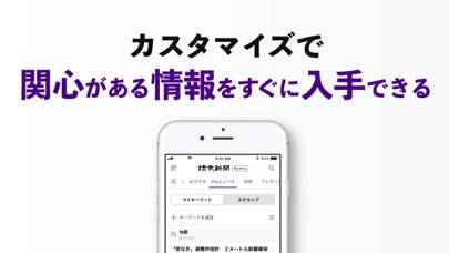 膨大なニュースの中から本当に必要な情報だけを効率的に収集できるようになります。政治・経済・スポーツなど関心のあるジャンルの表示・非表示をカスタマイズでき、住んでいる地域を設定すれば天気や地元ニュースに絞った表示も可能。欲しい情報を探す手間が省けます。