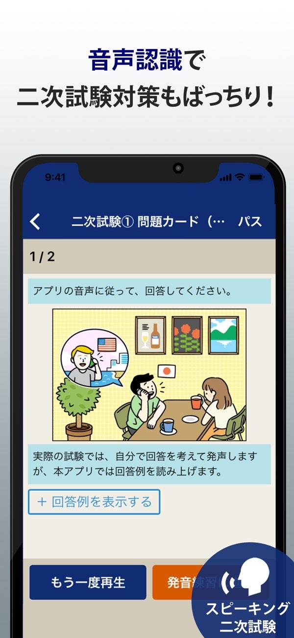二次試験、面接パートでは、自分が読む英文の発音をすぐに採点。自分の発音がどうなのかを客観的に知ることができるため、どこを改善すればいいのかが明確になりますよ。また、何度でも繰り返し練習できるので、発音に自信をつけることにもつながります。