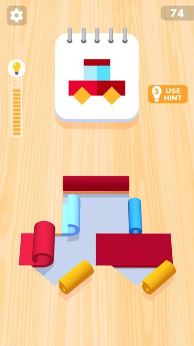 お題に沿った形を作っていくパズルゲーム。巻かれた紙を広げて形を作るのですが、広げる順番が何よりも重要。お題にある図形を見て、色の重なり方を考えながら紙をタップしてみましょう。