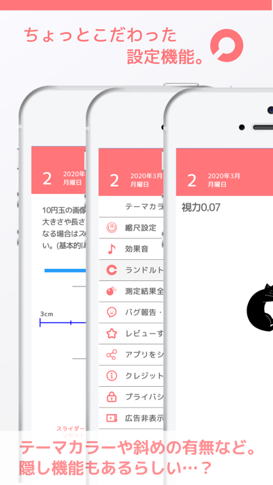 - 視力検査の正解・不正解の効果音設定など、ちょっとした遊び心もあり