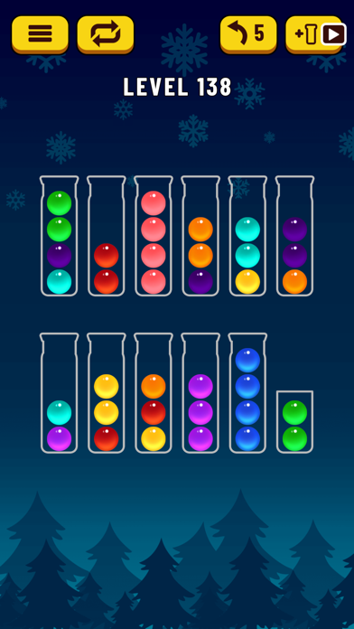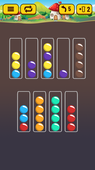 試験管に同じ色のボールを移動させて色を揃えるパズルゲーム。ハノイの塔みたいな感じで最小移動回数でやらないといけないかと思ったけど、移動回数は関係なく、じっくり考えながら移動させるものだったので、マイペースにできます。頭の体操、暇つぶしに丁度いいです。