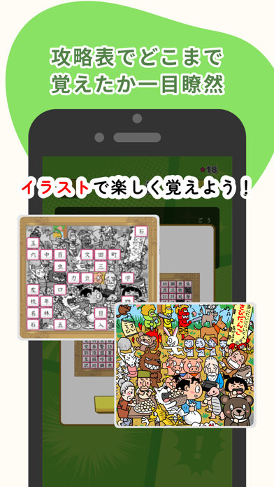 - 漢字を攻略していくと攻略表の絵がだんだん見えてくる