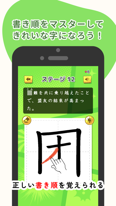 小学1年生から6年生までの子供たちに向けた漢字の書き取り学習アプリです。漢字を書き取るだけでなく、文字の太さやハネ、ハライなども表現されています。小学生に加え、大人が美しい字を書くための練習にも最適です。