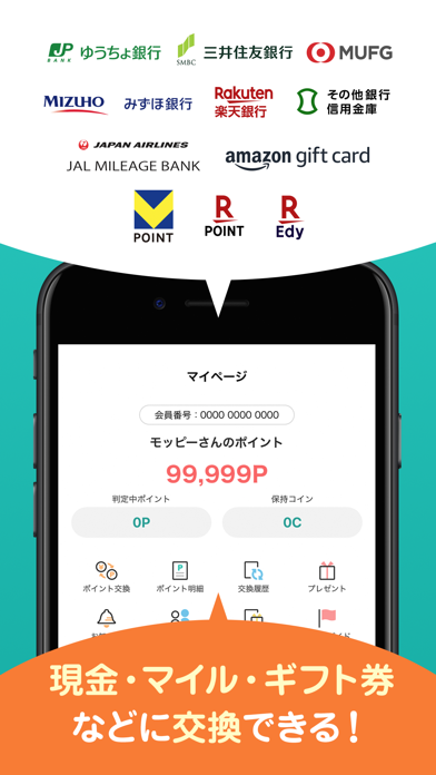 | ポイント交換先 | 電子マネー、ギフト券、現金など |