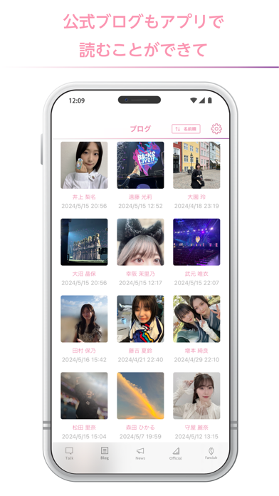 すべてのメンバーのブログへ簡単にアクセスできます。ブラウザからのアクセスは面倒で、気づけば何ヶ月も読んでいなかったなんてこともありますよね。本アプリを入れれば検索せずにブログを読めますよ。