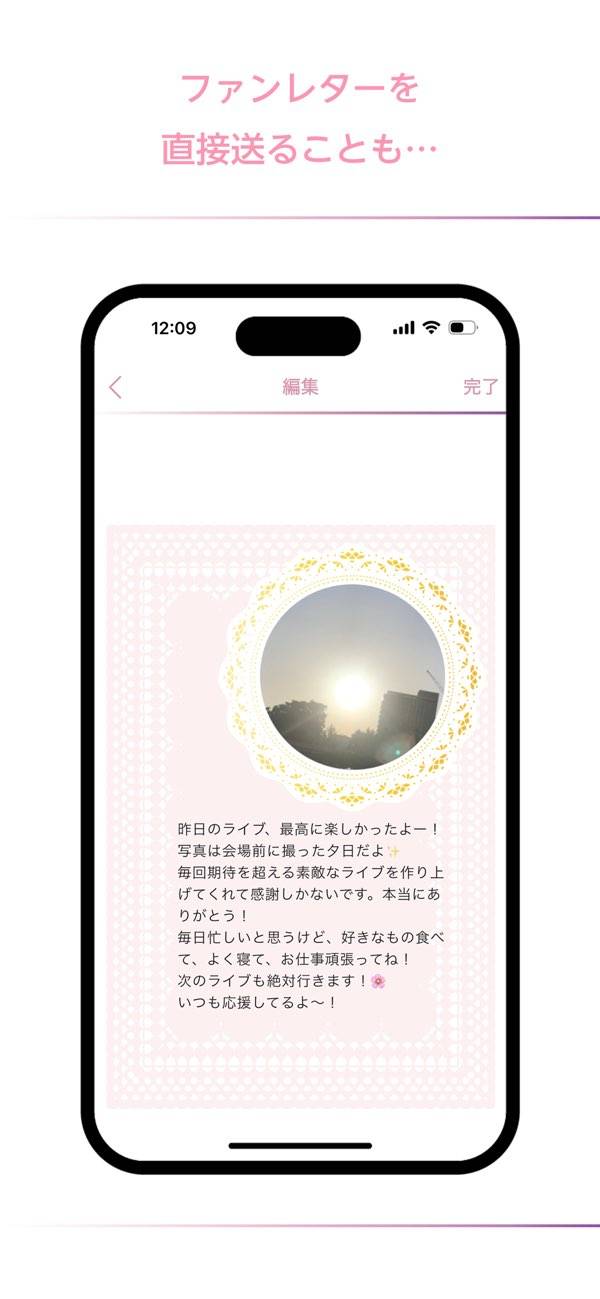 - 推しメンにファンレターを送信。応援しながら近況報告するのもアリ