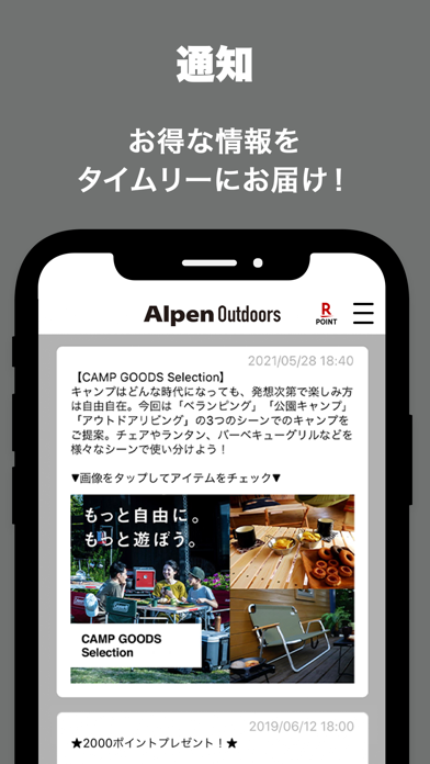 アルペンのアウトドア専門店でのお買い物が便利になるアプリ。本アプリでは、アルペンアウトドアーズ・アルペンマウンテンズ・アルペンアウトドアーズフラッグシップストアの店舗検索や、クーポン・セール情報の確認を行えます。また会員証も発行でき、買い物ごとにポイントを貯めてお得に買い物することも可能です。