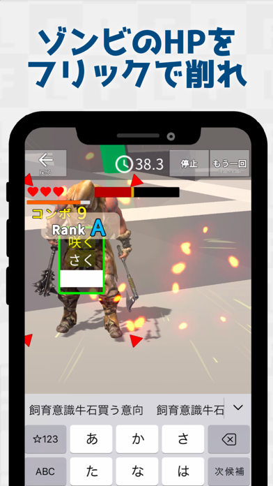 - 文字を素早く入力して、ゾンビを倒していくフリック練習ゲーム